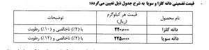 قیمت تضمینی دانه کلزا و سویا به شرح جدول ذیل تعیین می گردد: