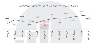 این در حالی است که تولید شیر گاو در پاییز سال ۱۴۰۰ کمتر از یک میلیون و ۶۸۰ هزار تن بوده است.
